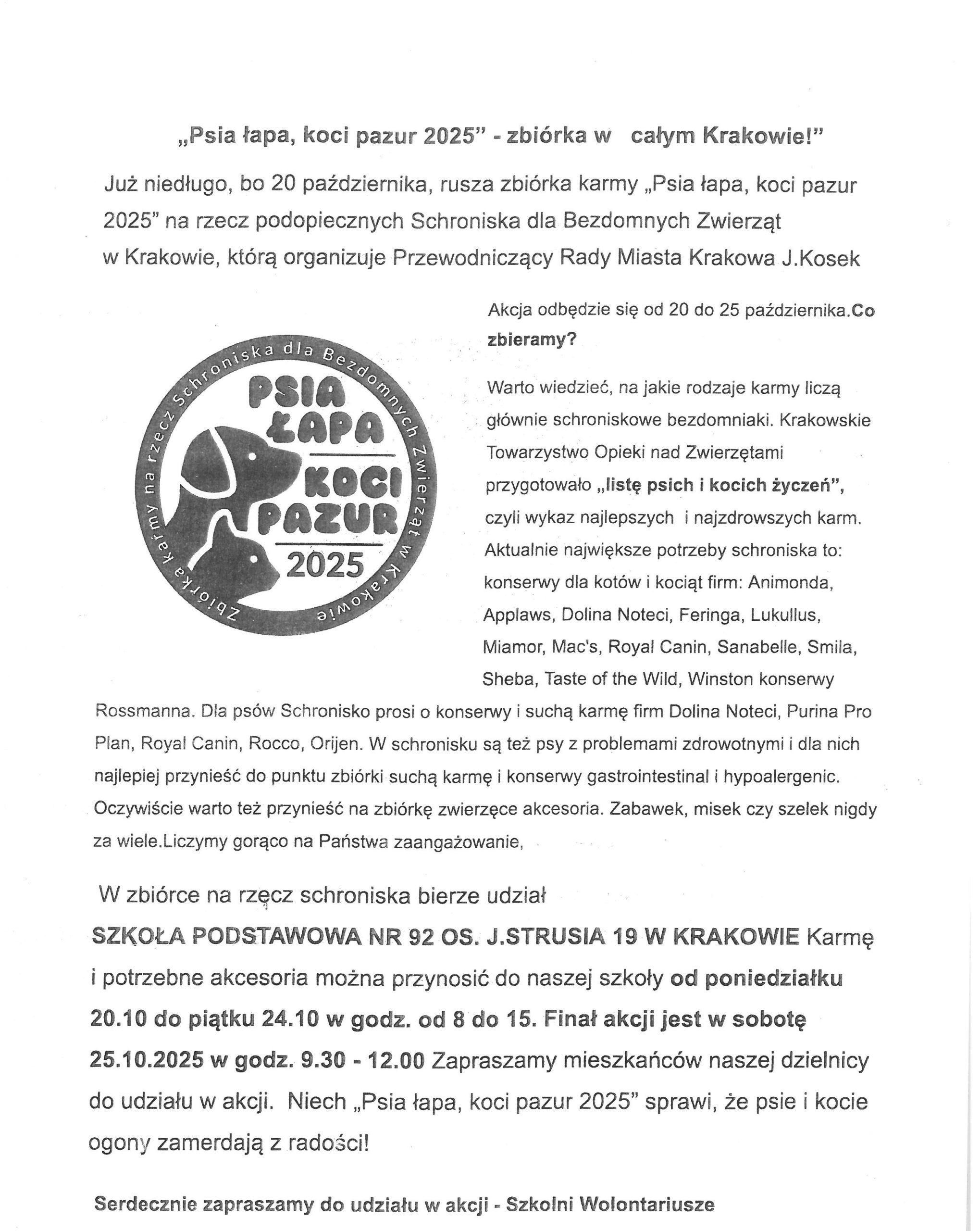 W dniu 9 października 2025 roku Wolontariusze z naszej szkoły wzięli udział w kweście podczas „Żonkilowego Kiermaszu” przy ul. Franciszkańskiej. Organizatorem corocznej akcji jest Hospicjum im. św. Łazarza, a uczniowie SP 92 bardzo chętnie biorą w niej udział kwestując na rzecz chorych i potrzebujących. I w tym roku było podobnie 😊 Dziękujemy pięknie Wolontariuszom za […]