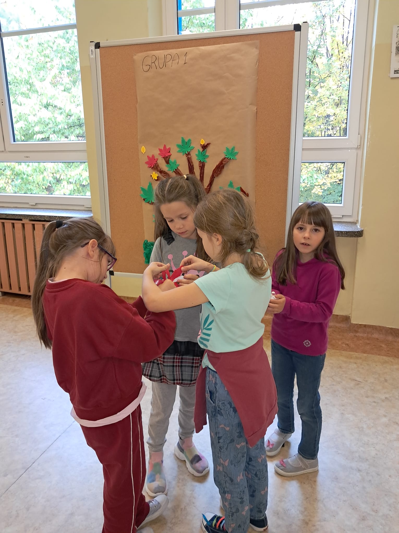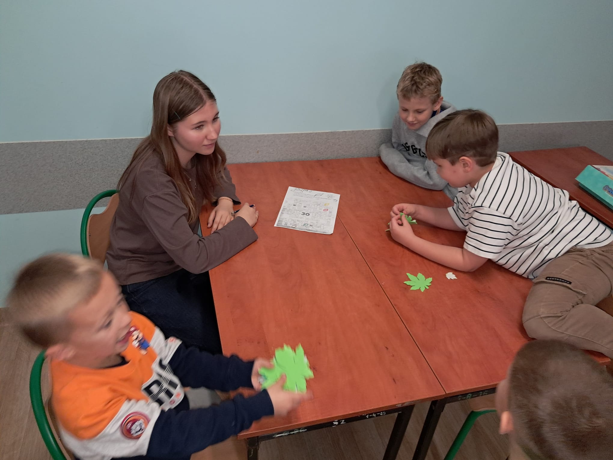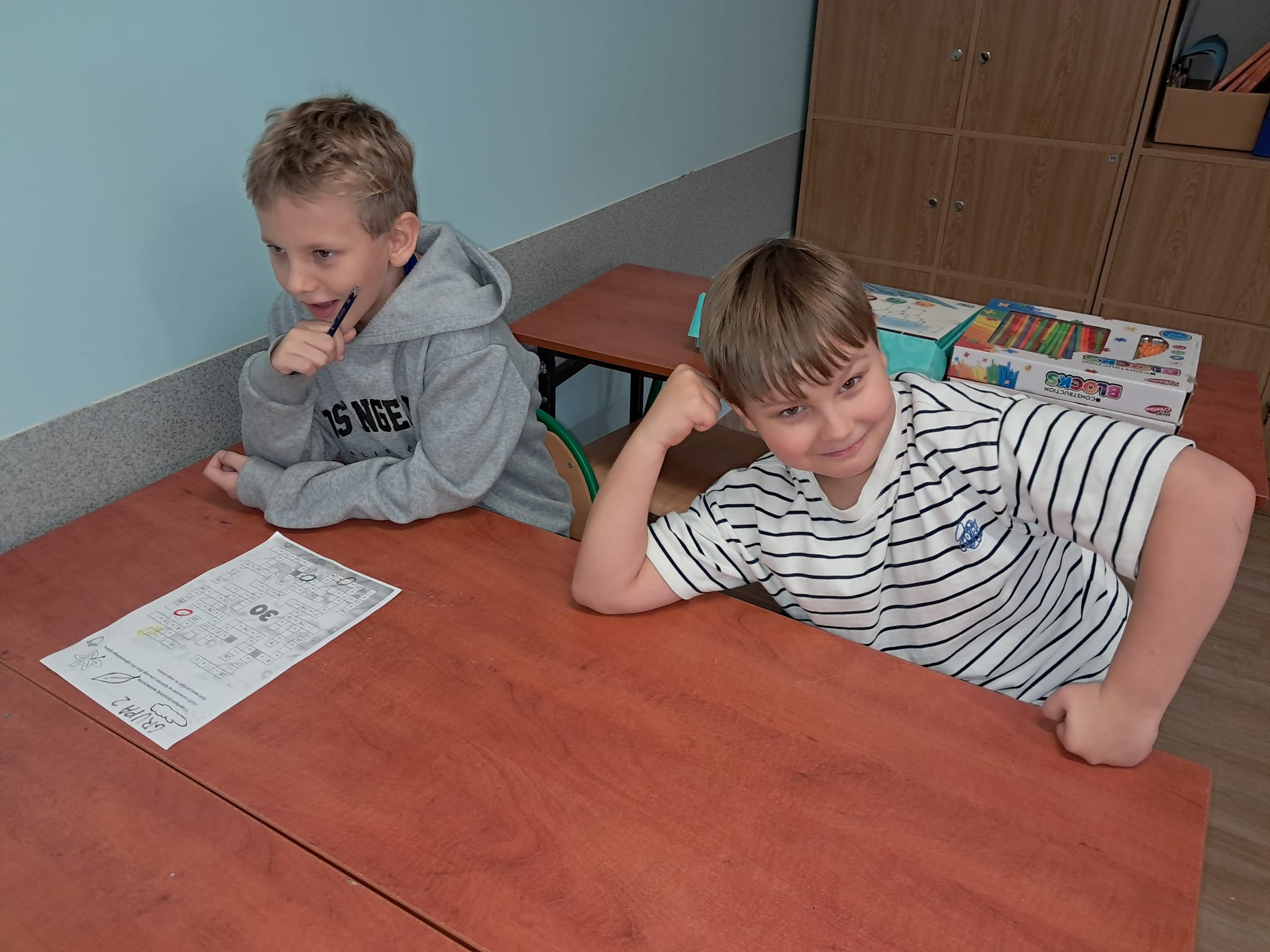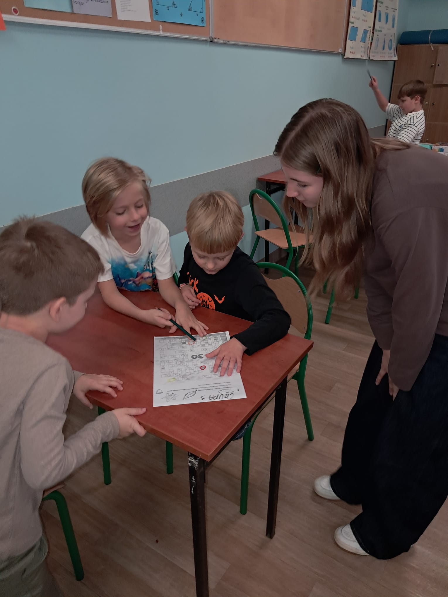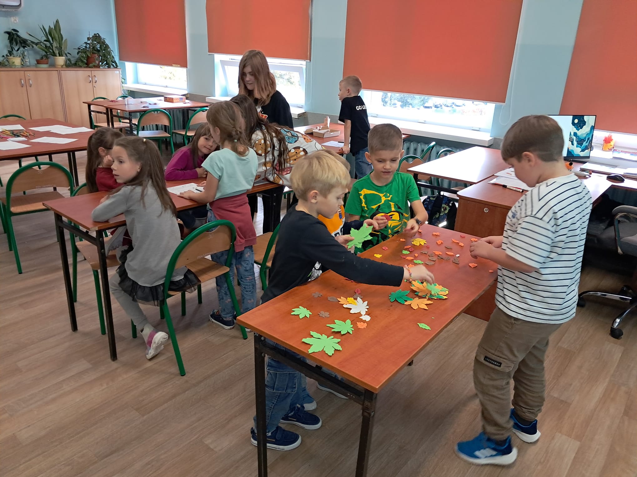 Z jesienią w tle uczniowie klas 1-3 rozwiązywali krzyżówki matematyczne, przyklejali listki według instrukcji oraz  kodowali.