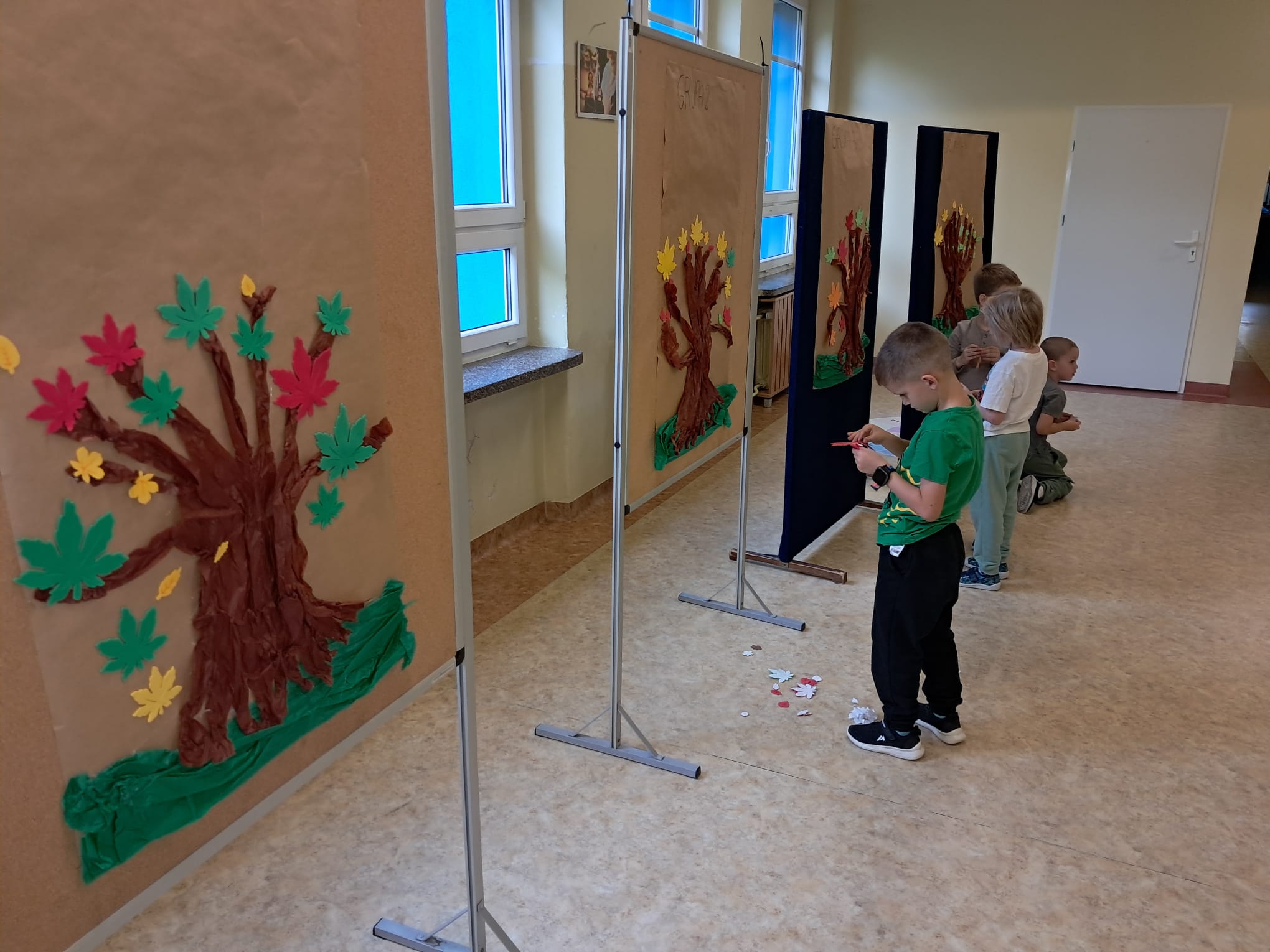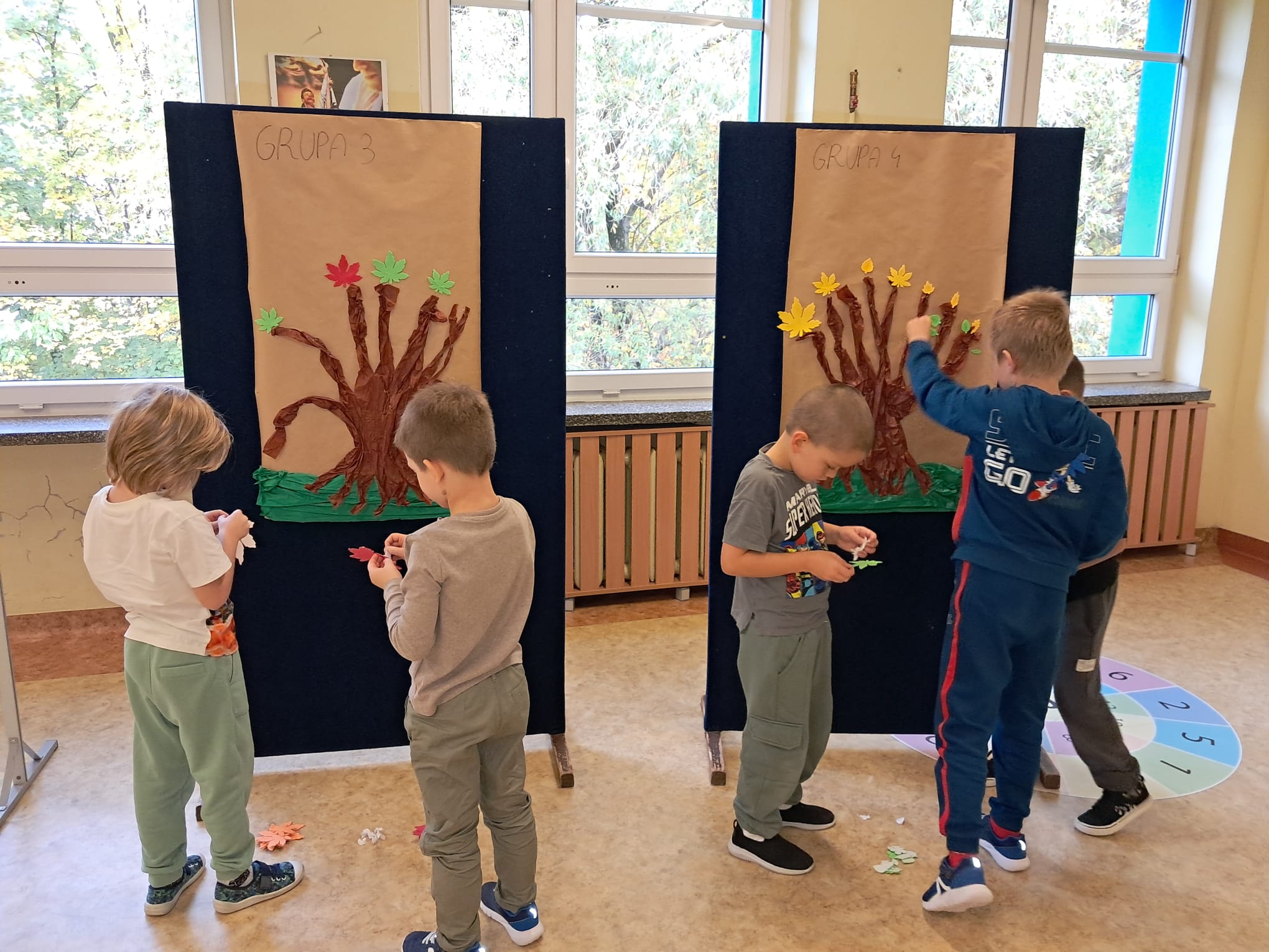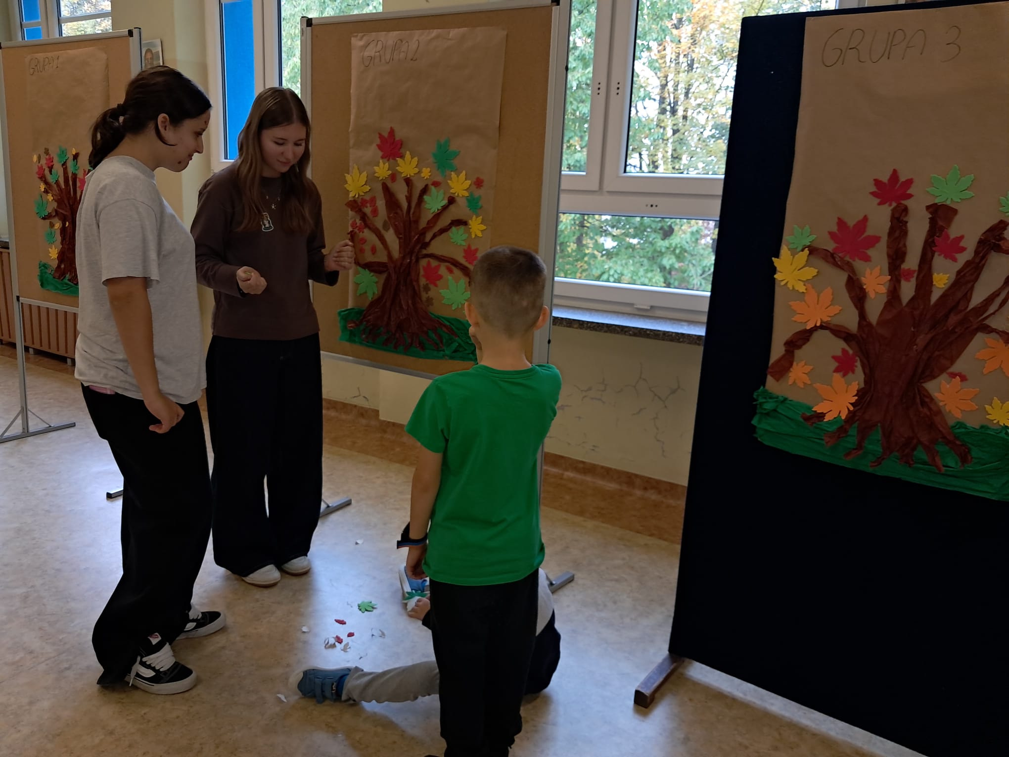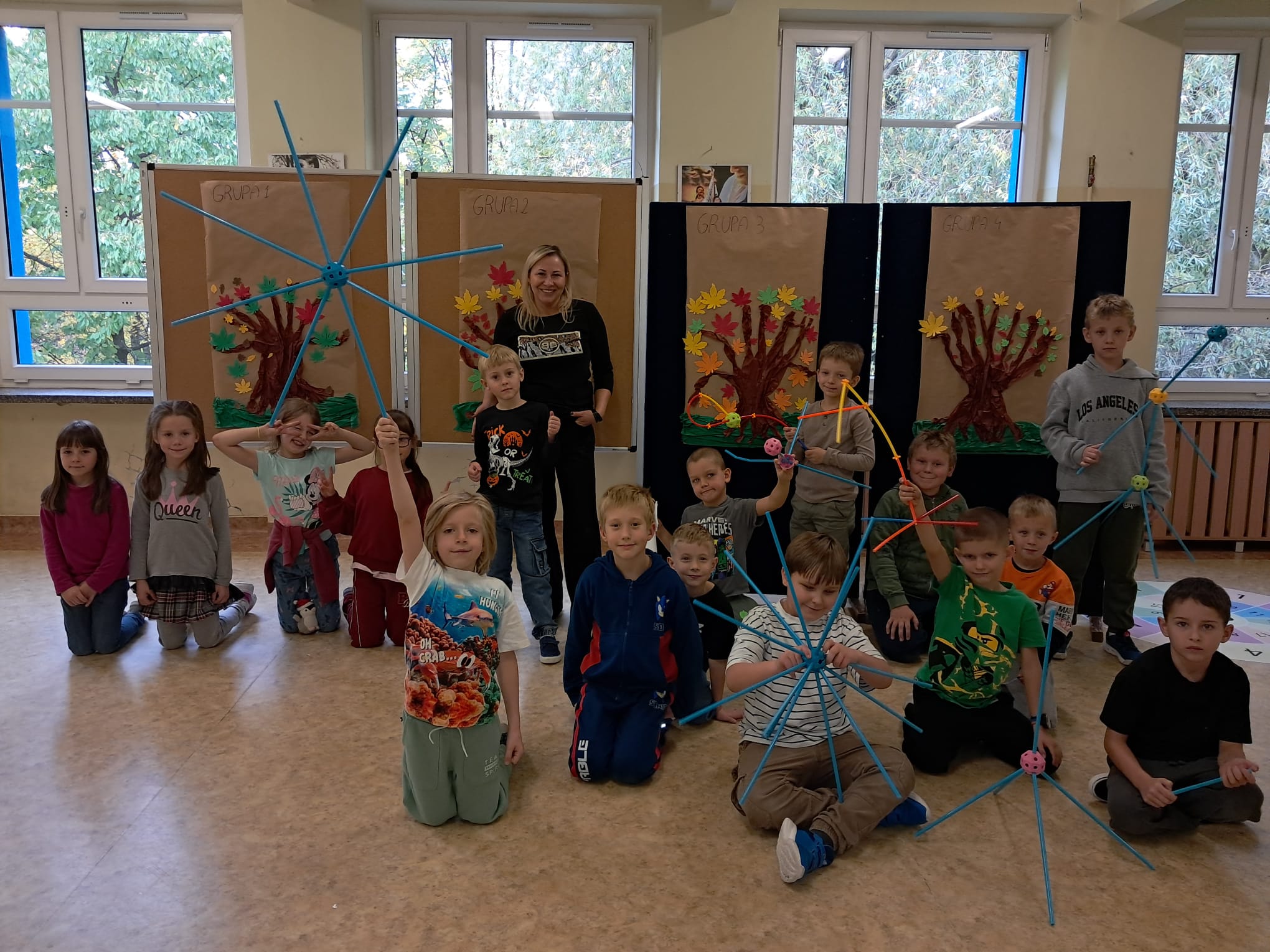 Z jesienią w tle uczniowie klas 1-3 rozwiązywali krzyżówki matematyczne, przyklejali listki według instrukcji oraz  kodowali.