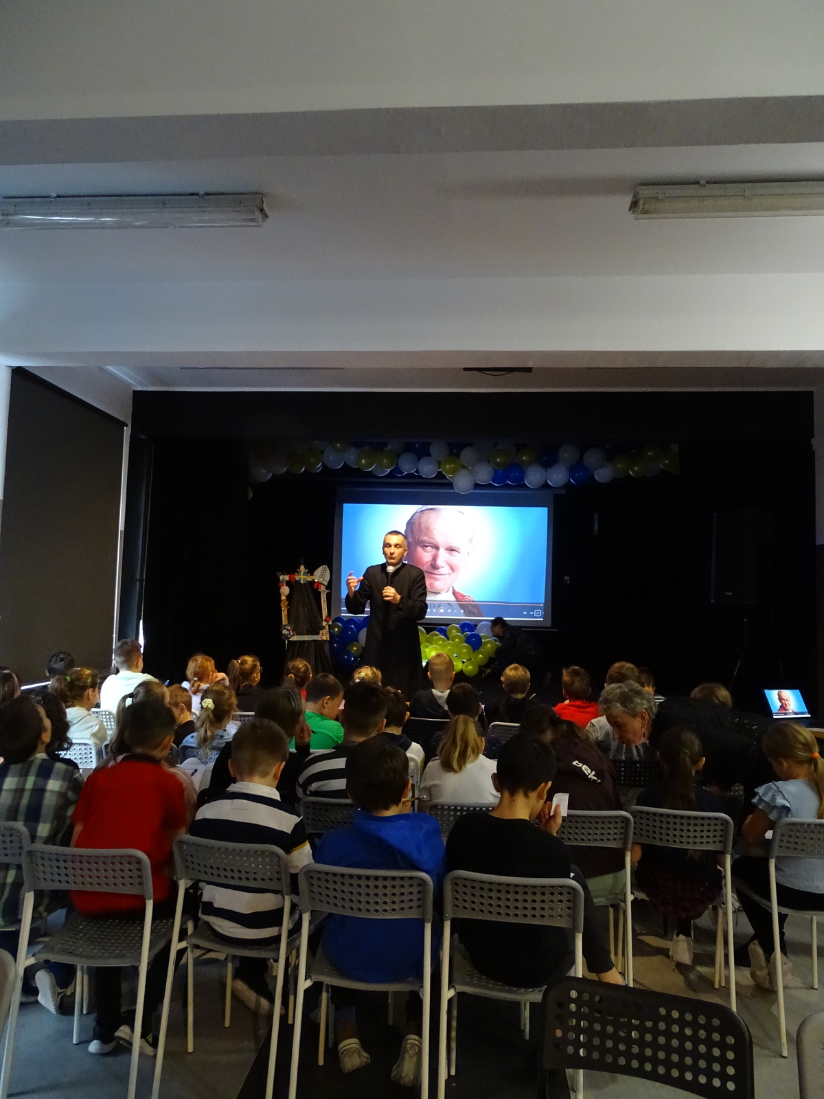 W ramach wydarzenia uczniowie zapoznali się z ciekawostkami i wybranymi faktami z życia św. Jana Pawła II, a także wzięli udział w konkursie tematycznym.