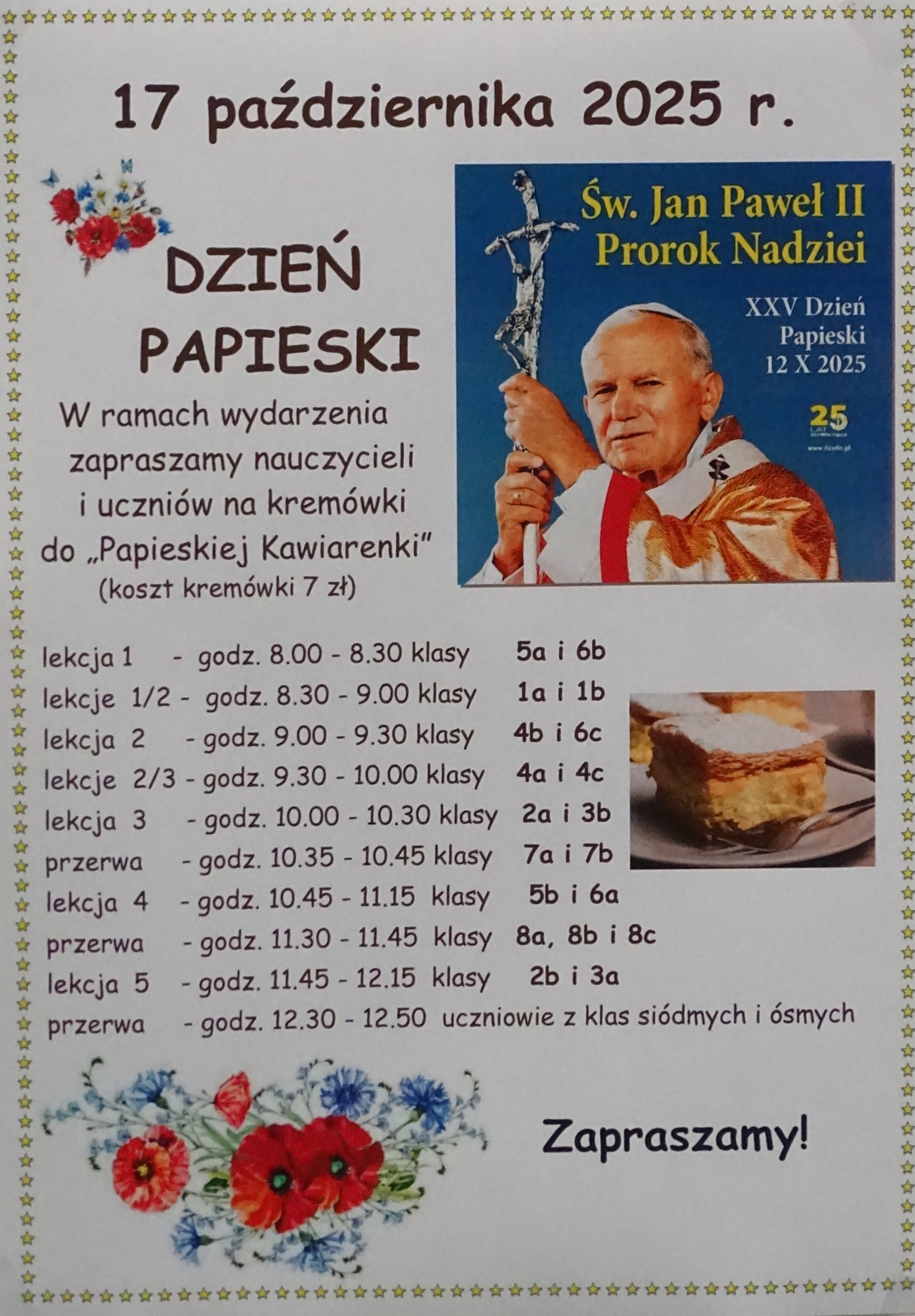 W dniu 17 października 2025 r. w naszej szkole odbył się coroczny Dzień Papieski.