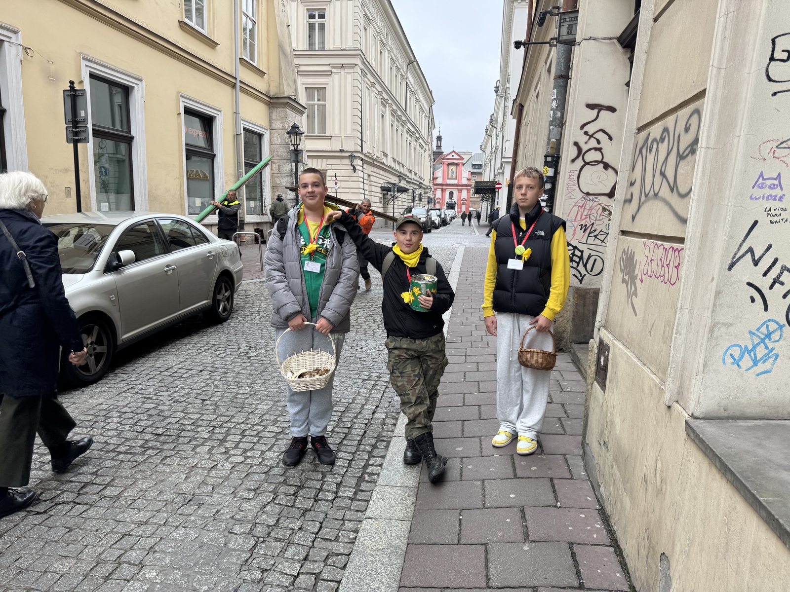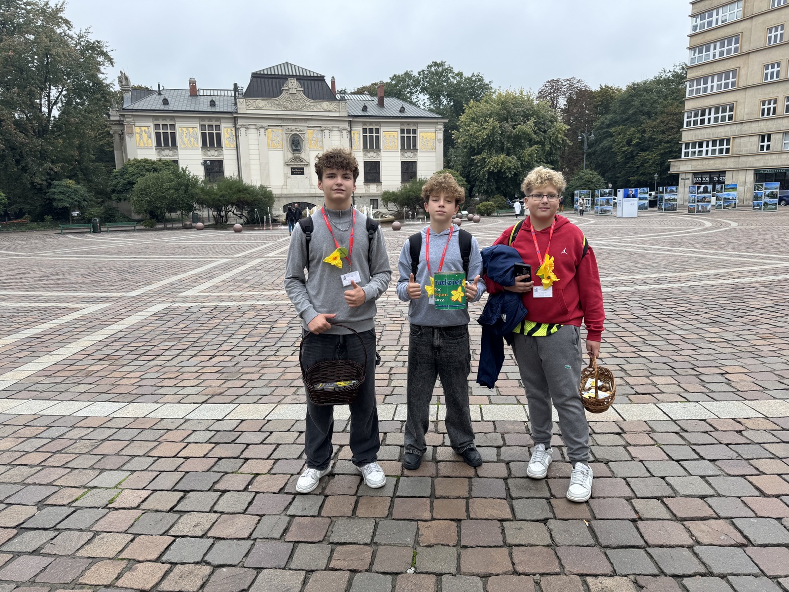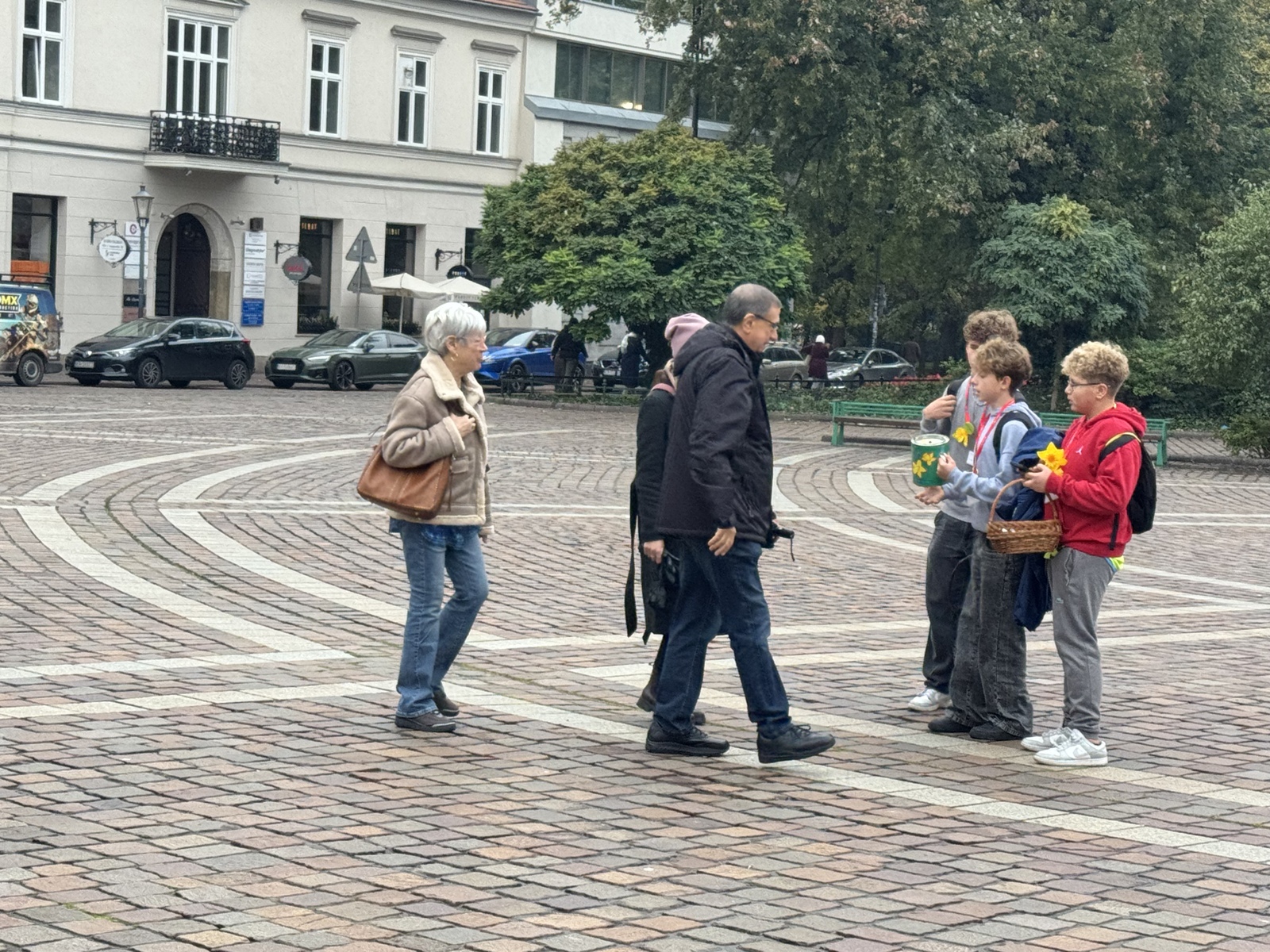 W dniu 9 października 2025 roku Wolontariusze z naszej szkoły Wolontariusze wzięli udział w kweście podczas „Żonkilowego Kiermaszu” przy ul. Franciszkańskiej.