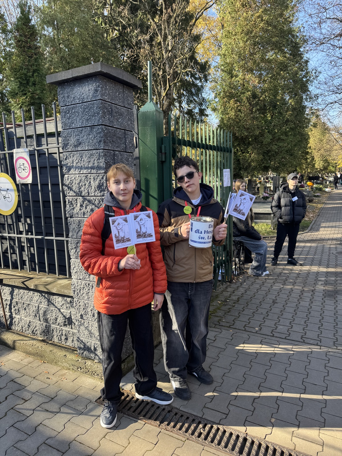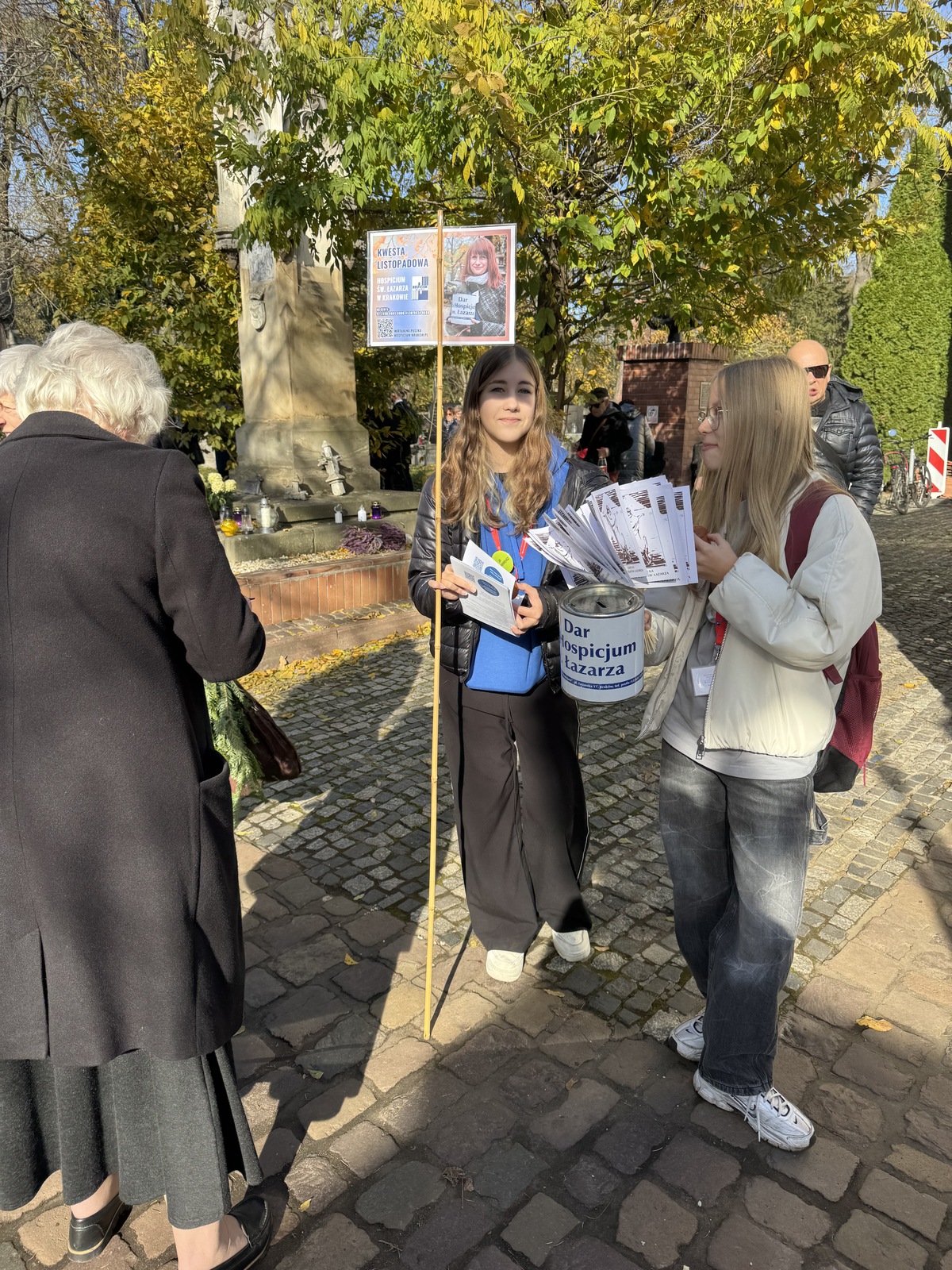 W przeddzień Wszystkich Świętych wolontariusze naszej szkoły wzięli udział w kweście na rzecz Hospicjum św. Łazarza, prowadzonej przy bramach cmentarza Rakowickiego w Krakowie.